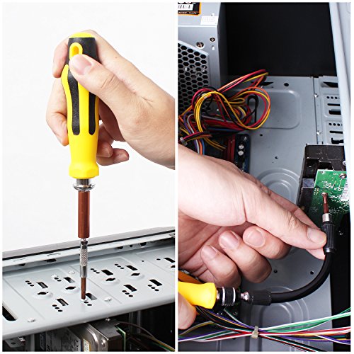 2 Screw Drivers - Smaller driver with flexible shaft to snake into hard-to-reach area; Bigger driver with retractable shaft for heavy duty like auto repairs.