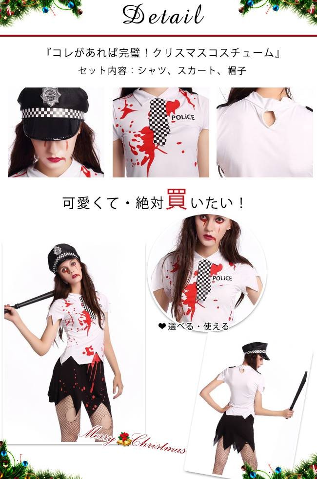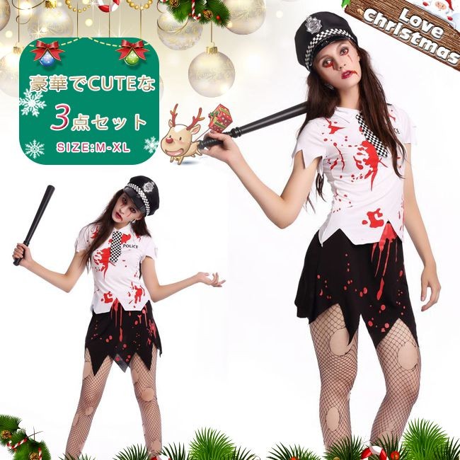 クリスマス コスプレ レディース ホラー系 ポリス ゾンビ 血まみれ 制服 セクシー コスチューム 衣装 仮装 変装 大人 服 セットアップ パーティーグッズ イベント用品 余興 xmas Christmas cos 女性用