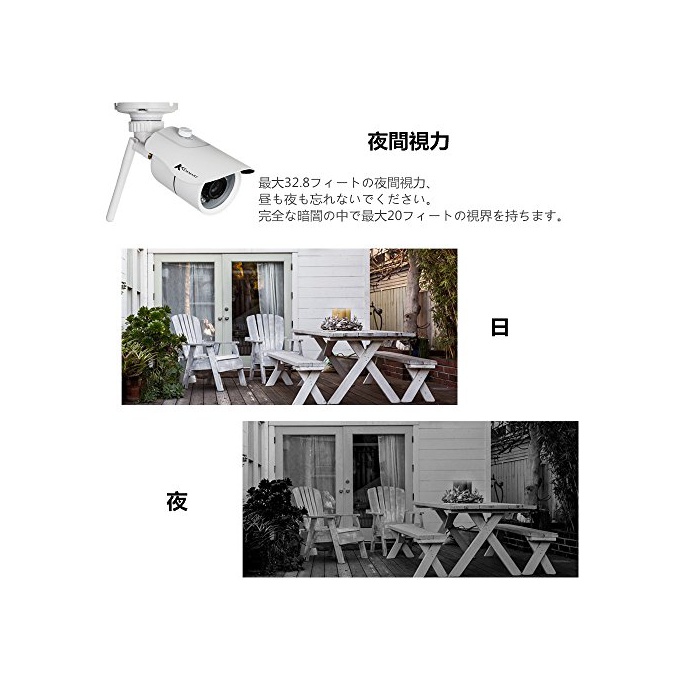 나이트 비젼:어둠 안에서 시야가 최대20피트까지의 32.8피트까지의 나이트 비젼.또한고품질의 주야 감시가 가능합니다.