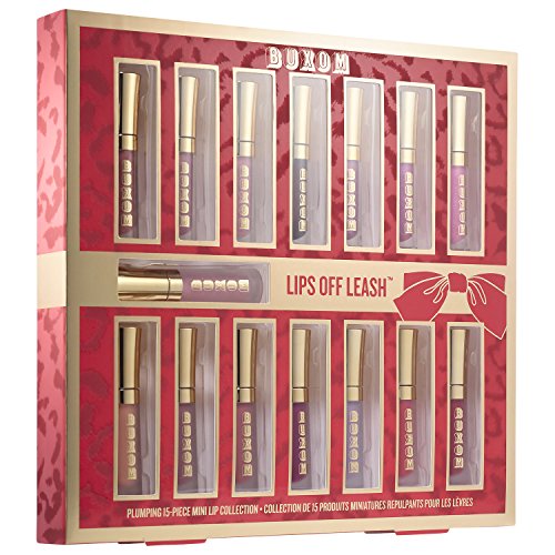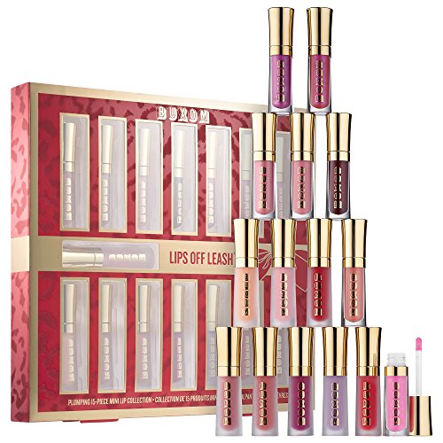 Studio : Buxom Publisher : Buxom Binding : Misc. Product Description Buxom Lips Off Leash Collection! 15 Plumping Mini Lip Polishes Creams! 7 Lip Polishes: Brooke, Clair, Sophia, Jasmine, Stacy, Jill, Kayla! 8 Lip Creams: Pink Champagne, Peach Dacquiri, Dolly, Mudslide, Berry Bramble, Wild Orchid, Cherry Flip, Sangria! This 15-piece mix of lip plumpers includes shimmer-shine lip polishes and glassy-smooth lip creams for two different finishes. With lip-loving vitamins and richly pigmented color, this collection is formulated with a unique peptide and hyaluronic acid booster to help stimulate collagen, build volume, and plump look of lips without irritation. 0