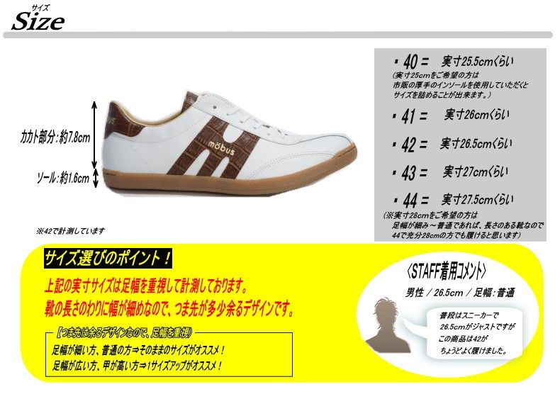 | サイズ | 作り⇒幅細め 【サイズ選びのポイント!】 足幅が細い方、普通の方⇒そのままのサイズがオススメ! 足幅が広い方、甲が高い方⇒1サイズアップがオススメ! |