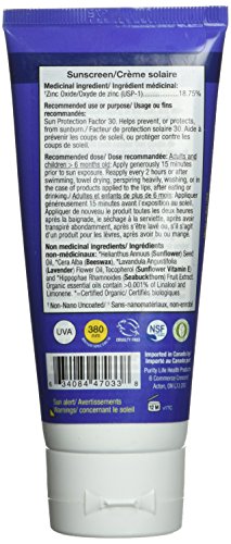 -. Feature : Broad spectrum protection from UVA & UVB rays using the safe mineral Zinc Oxide. No oxybenzone, octinoxate, or other chemical active sunscreening agents. / Water resistant for at least 40 minutes; biodegradable / Lightly scented with Organic Bulgarian Lavender in an organic moisturizing base of Organic Extra Virgin Olive Oil, Shea Butter, Cocoa Butter & Jojoba Oil. / BPA & phthalate-free tube from #2 recyclable plastic.