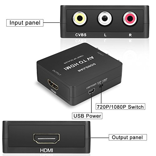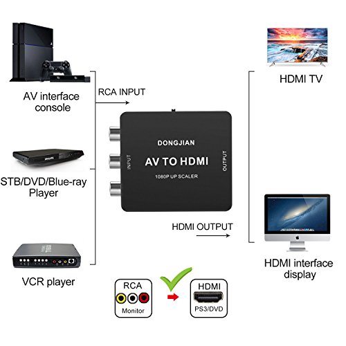 Studio : DONGJIAN RCA Composite CVBS AV to HDMI Video Audio Converter Adapter with USB Charge Cable Support 1080P for PC Laptop Xbox PS4 PS3 TV STB VHS VCR Camera DVD Publisher : DONGJIAN RCA Composite CVBS AV to HDMI Video Audio Converter Adapter with USB Charge Cable Support 1080P for PC Laptop Xbox PS4 PS3 TV STB VHS VCR Camera DVD Product Description