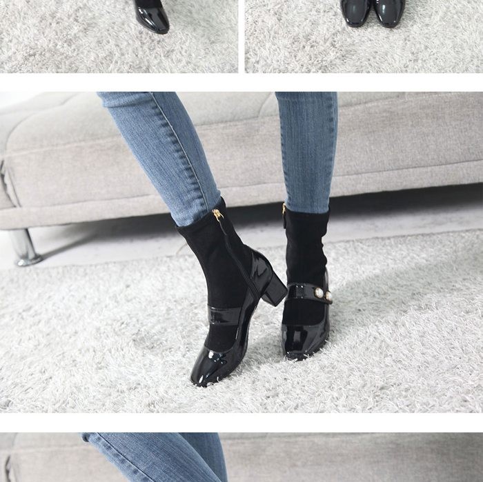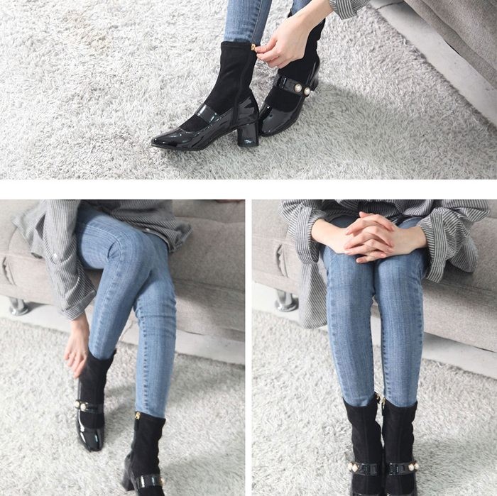 商品名:ストレッチブーツ レディース チャンキーヒール 太ヒール 2017 秋冬 ファッション 靴 婦人靴