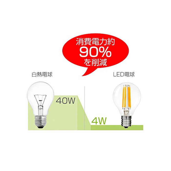백열전구의 40W 형상당에서,종래의 백열전구와 비교,소비전력은 약90%를 삭감으로 옵니다!가계로도 친절한 상품입니다.