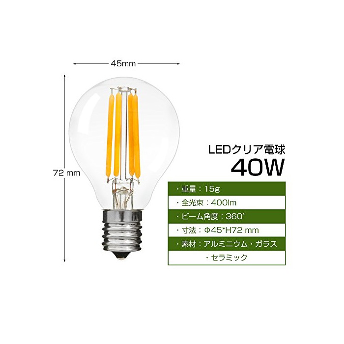 원본상품명: クリア電球 4W E17口金 フィラメント 電球色 クリアタイプ エジソンランプ LEDクリア電球 LED電球 P45 E17 360度光