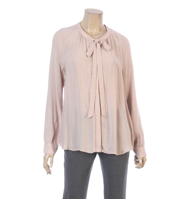 LIST, 잔잔한 셔링주름으로 여성스러운 분위기를 느낄수있으며 리본끈으로 포인트를준 블라우스입니다