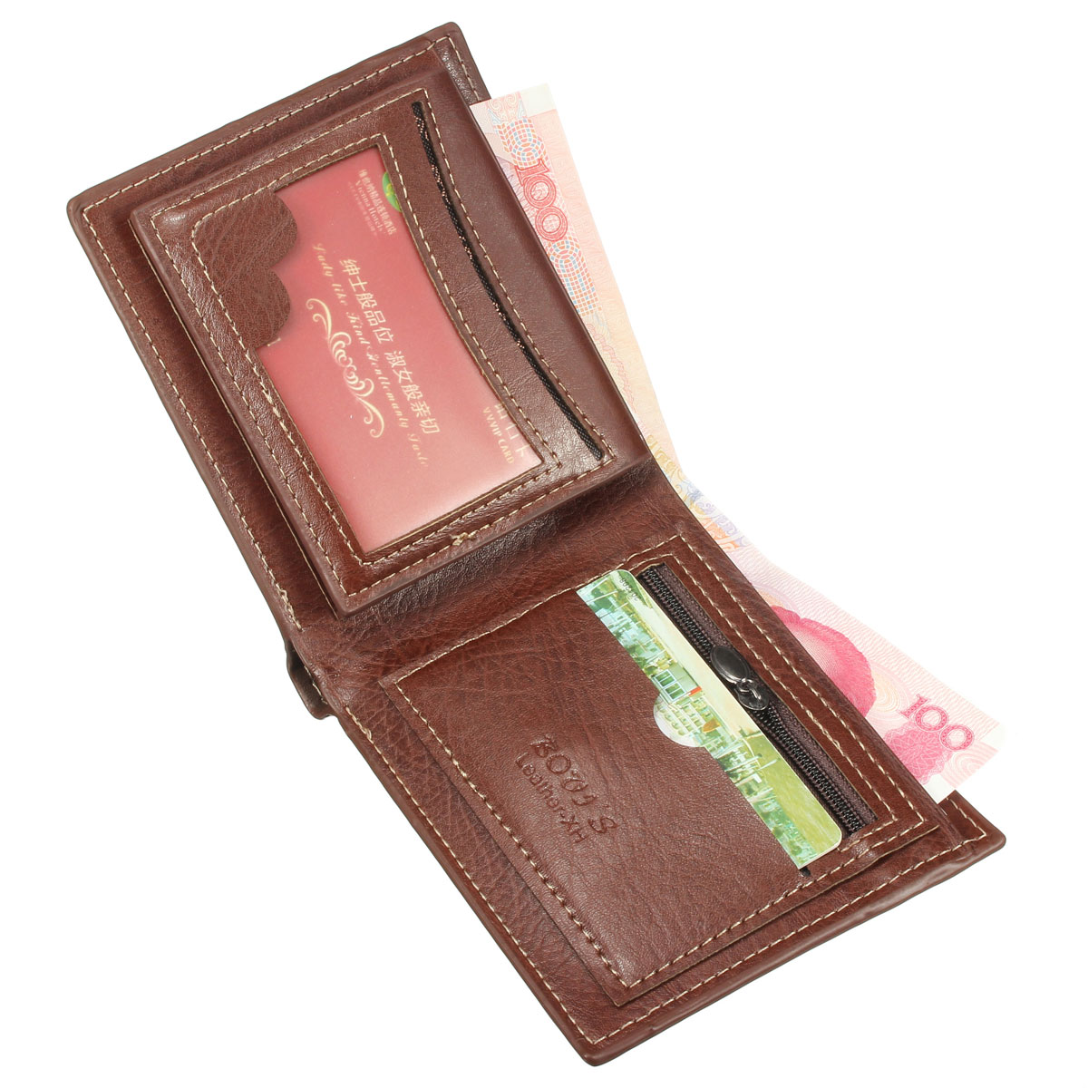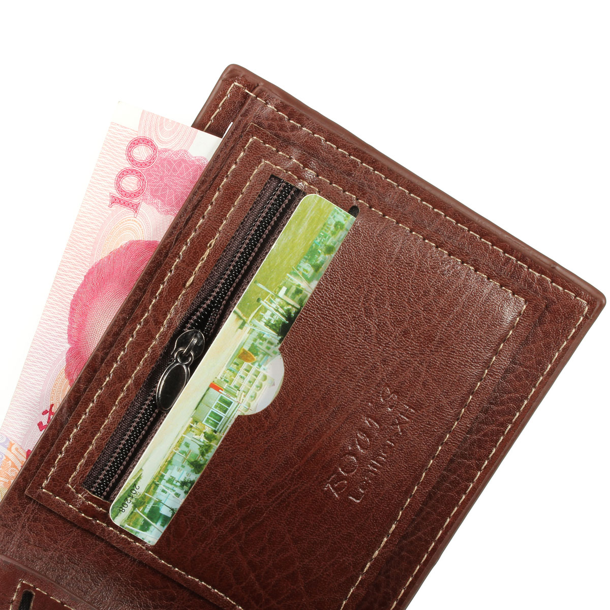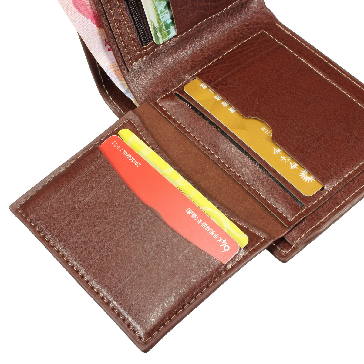 Interior :5 card slots,1 photo slot,2 Note Compartment,2 ZipperPouch