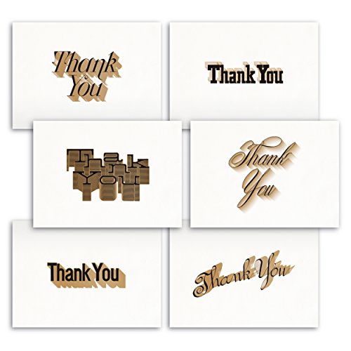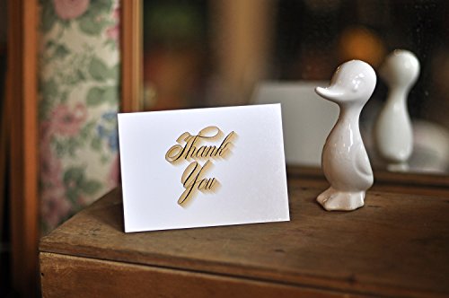 Classy, elegant 36 bulk THANK YOU CARDS and white envelopes in a cardboard box set. Folded card size is 4.875 x 3.5-Inch (unfolded 4.875 x 7-Inch). Mails with standard postage