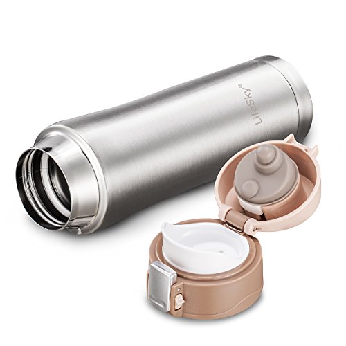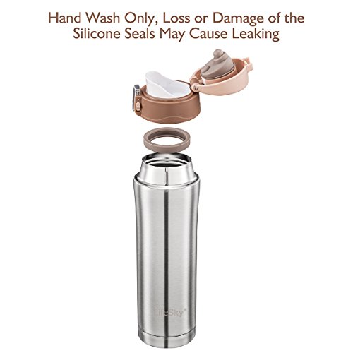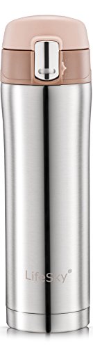 LifeSky Stainless Steel Insulated Travel Coffee Mug, Double Wall Vacuum Insulated Water Bottle, BPA Free Flip Cap for 1-Hand Operation, 16 oz (Champagne Lid)