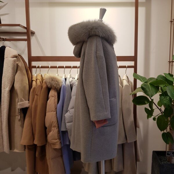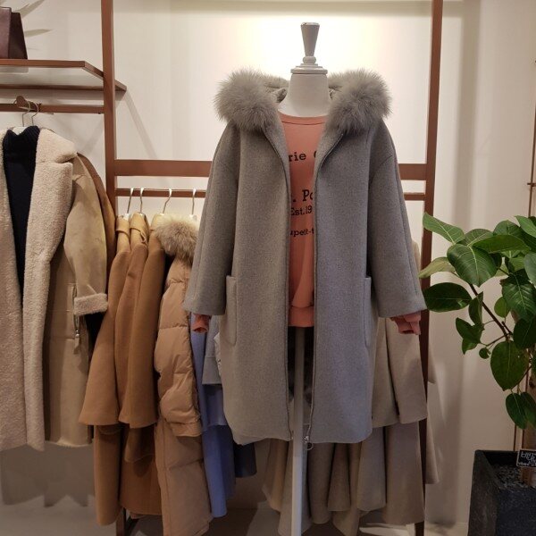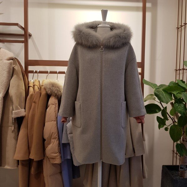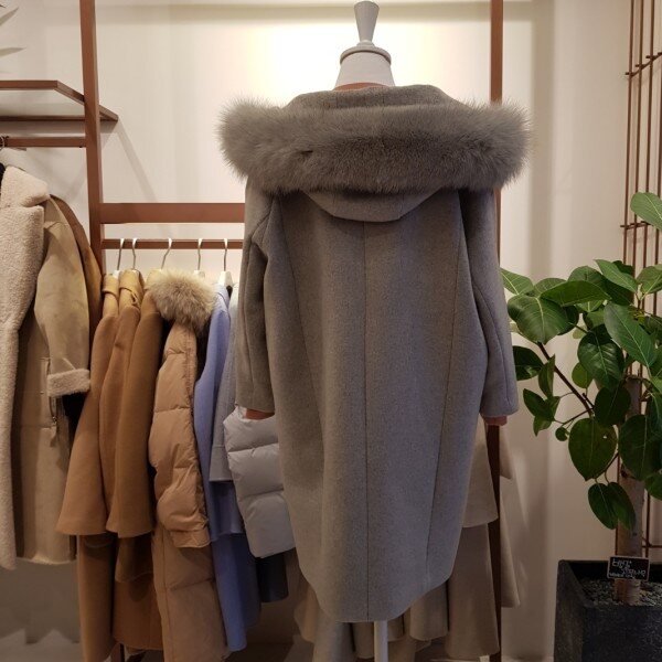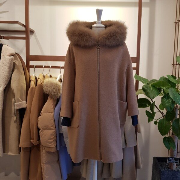 캐시미어가 함유되어있는 케이프느낌의 고급스런 울블렌코트입니다~폭스퍼가 탈부착되어 실용적이며 루즈핏이라 이너웨어 많이겹쳐입어도 되는,몸매보완에도 좋은 코트입니다~총기장94센치입니다