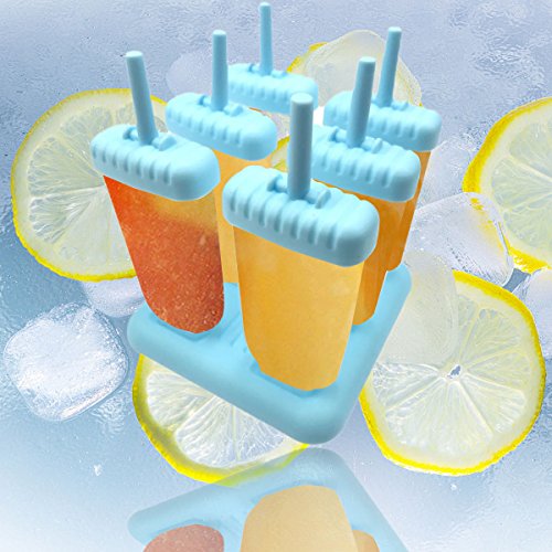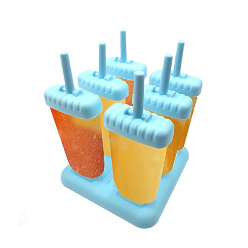 ZICA Set of 6 Popsicle Ice Pop Molds with Tray Make Your Own Healthy Frozen Fruit Juice Popsicle (blue 2)