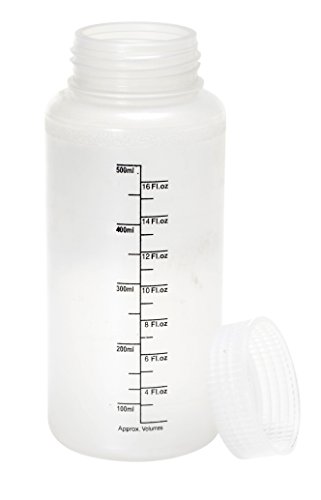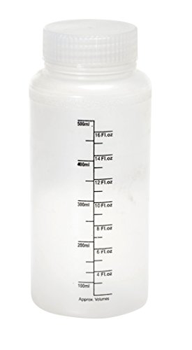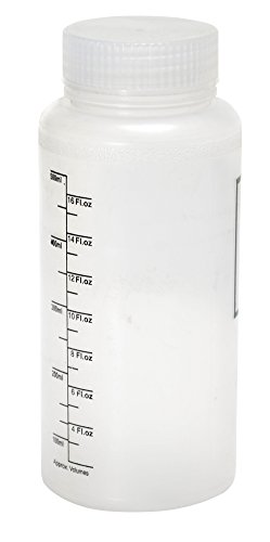 Vestil BTL-W-PP-16-LBL Wide Mouth Polypropylene Round Graduated Plastic Bottle with Label and Natural Cap, 16 oz Capacity, Translucent