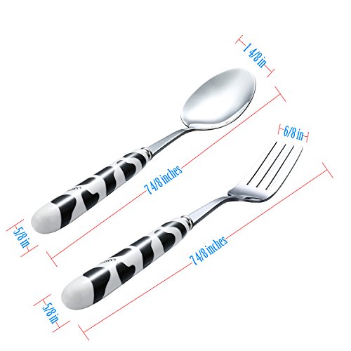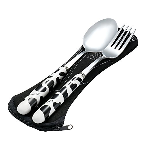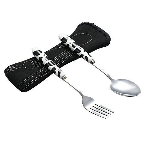 Stainless steel Fork & Spoon Set with Ceramic Handle and Carrying Case for Kids and adults (Black)