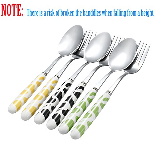 【Ceramic Handle】Big Ceramics Handles are Easy for Kid’s Hands to Hold.Effective fork tines, no sharp edges and deep spoon shape for easier scooping of food and liquids.NOTE:There is a risk of broken when falling from a height.