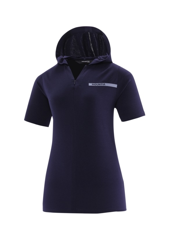 가볍고 시원한 멜란지 소재와 자가드 매쉬 소재를 사용하여 힙을 살짝 덮을수 있고 후두가 있어서 가벼운 일상 이나 운동시 부담없이 착장할수 있는 여성전용 티셔츠