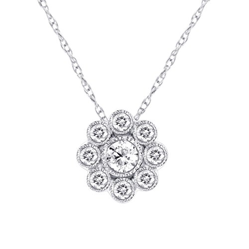 -. Title : 10K White Gold Flower Shape White Diamond Pendant Necklace (0.13 Carat)