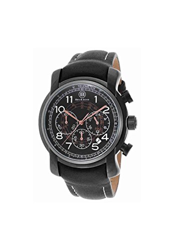 Go the distance with the new Ben & Sons Mercury chronograph. Outstanding men's timepiece has a generously sized 44mm diameter case with distinctively angled lugs presented on an attractive leather strap. The intricate dial has a telemeter outer dial, three subdials, polished sword hands and Arabic numeral hour markers. Choose from models in stainless steel, gunmetal, black, yellow gold or antique gold-tone stainless steel.Feature