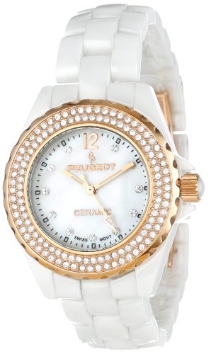 Peugeot Women's PS4892WR Swiss Ceramic Swarovski Crystal White Dial Watch