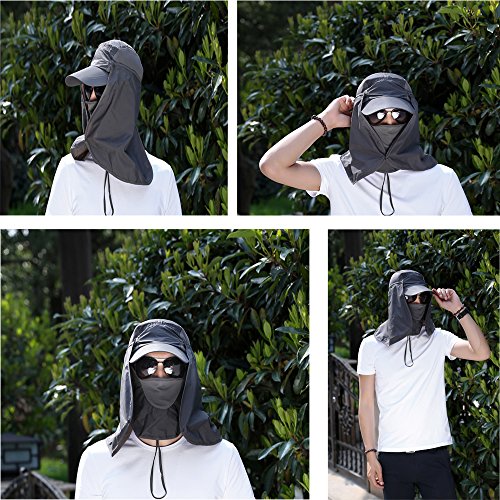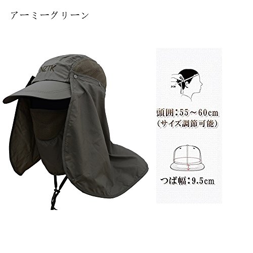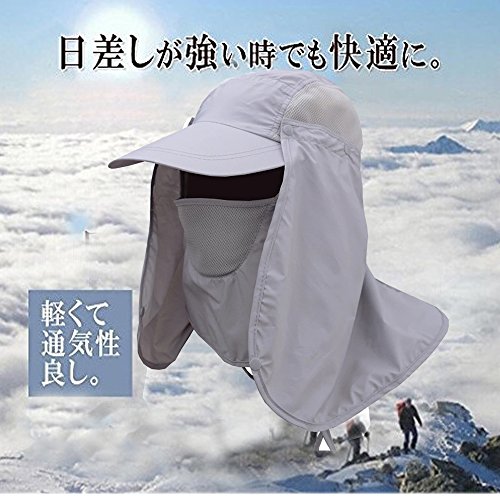 -. Feature : 頭から首まで完全防備のUVカット帽子!マスクも付き! / 帽子・タレ装着(後首)・タレ・マスク装着(顔・前首)と4wayで使用可能!! / 軽量・折り畳み可能で、バッグの中に持ち運び可能この日よけ帽子! / マスク部分にメッシュ使用している為、通気性抜群!!タレもマスクもワンタッチボタンで簡単脱着 / 風で飛ばされないよう、サイズ調整可能なあご紐付釣り・キャンプ・アウトドア・農作業・ガーデニング・屋外イベントなどに大活躍!収納によるタタミしわなどがあります。