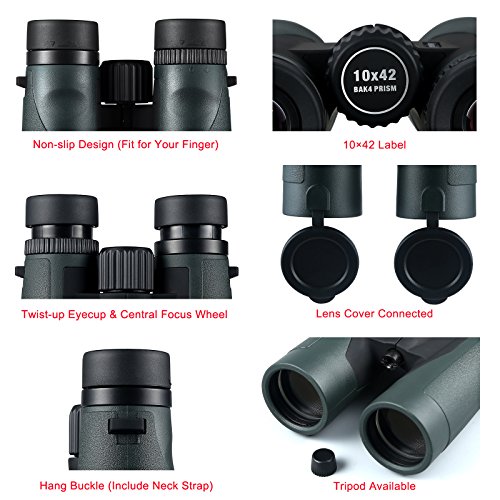 Roof-Prism 10x42 Binoculars With True 10 Magnification And 42 Millimeter Objective Diameter Can Obtain Much More Spaces and Get More Sharp Image To Ensure Your Comfortable Viewing. Then Your Eyes Will Not Be Easy To Get Tired.
