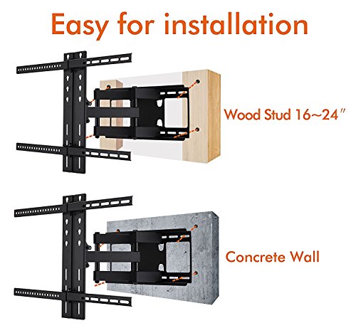 How do I know if this wall mount will fit my TV? Please measure the screw hole pattern on back of your TV first, if it is 200*200 400*400 up to 400*600, and the weight of TV is less than 110lbs, then this wall mount will fit your TV. DO NOT USE SIZE OF YOUR TV TO DETERMINE IF THE WALL MOUNT WILL FIT. It allows maximum flexibility to extend, tilt and swivel, providing easy viewing from any position in a room.