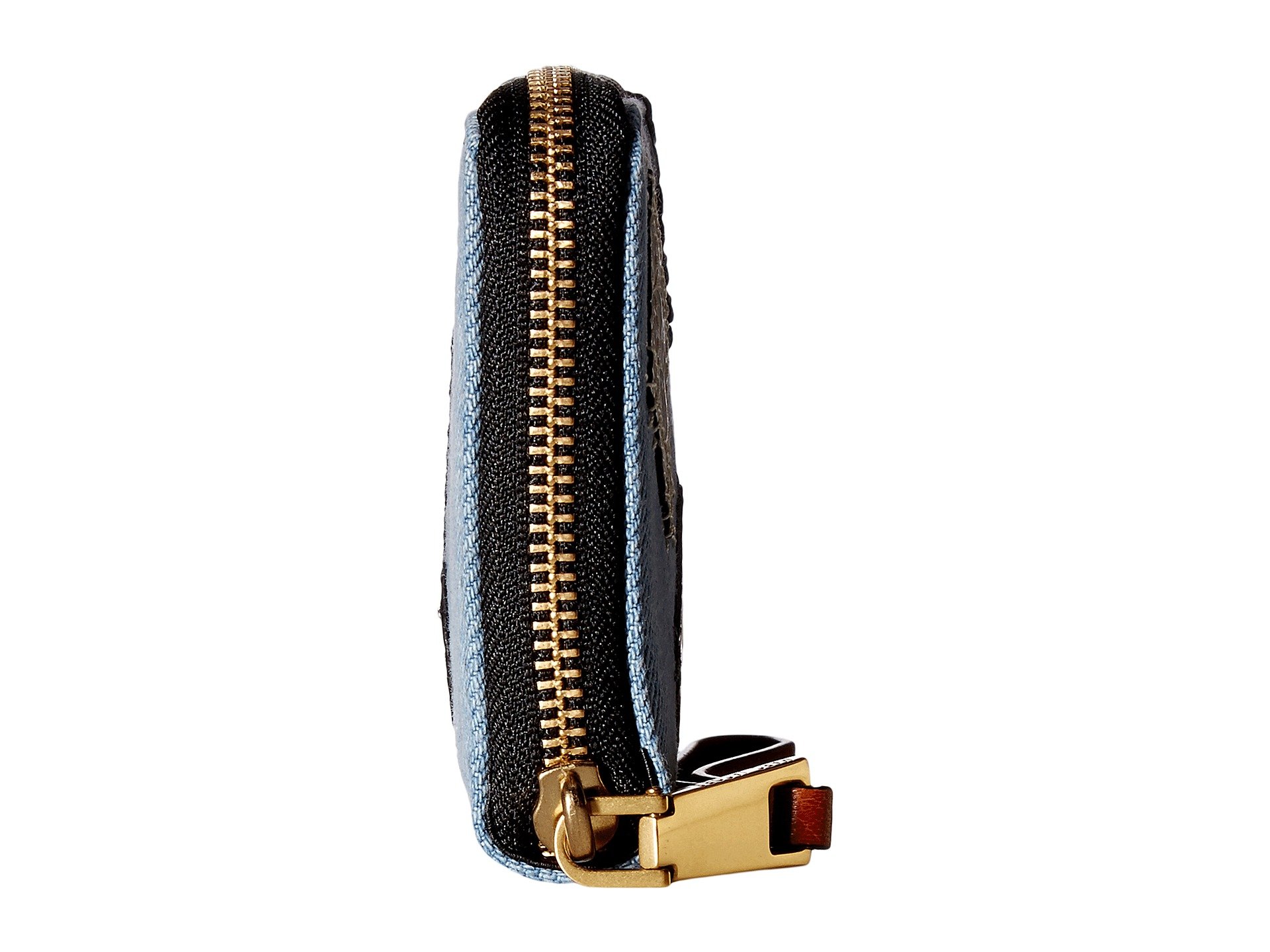 | Product Information SKU: #8916456You have a busy day! Make it easy carrying the Marc Jacobs™ Denim Patchwork Zip Phone Wristlet and have all your essentials at the ready. Wristlet made of 100% cotton. Full zip-around closure. Wristlet carry strap. Stunning patchwork designs in a variety of colors and textures adorned throughout.Brand name hardware at front. Soft cow leather lined interior features dual slip pockets, six credit card slots and side zipper pocket for additional storage. Imported. This item may ship with an attached security tag. Merchandise returned without the original security tag attached or a damaged tag may not qualify for a refund.Measurements: Bottom Width: 6 in Depth: 1?2 in Height: 4 in Accessory Strap Length: 7 1?2 in Accessory Strap Drop: 7 1?2 in Weight: 6.2 oz |
