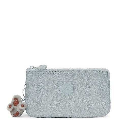 Kipling Creativity Large Metallic Pouch, Silver Glimmer Metallic