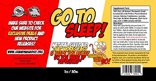 -. Binding : Health and Beauty -. Brand : Grandma Said So -. EAN : 0688713584262 -. Feature : SLEEP BETTER & WAKE UP FEELING REFRESHED OR WE'LL SEND YOUR MONEY BACK! -Strling with your sleep? Don't want to spend a fortune on chemical-filled products or doctor bills? This natural sprayable sleep aid is made for you. Hurry, very low supply. / [30ml] 100% ALL NATURAL, PROVEN SLEEP AID SPRAY. EFFECTIVE & EASY. NOTHING COMPARES -Don't price shop. Unlike other addictive options like prescription medications or melatonin, ours is 100% effective & works fast! Try it, finally get sleep for good. / READ THIS BEFORE BUYING...OTHER SELLERS DON'T WANT YOU KNOWING THIS --> Some sleeping pills look nice, but don't actually work well, are addictive, have harsh chemical ingredients with nasty side effects, & no warranty if it doesn't work. Order ours. / THE ONLY EASY, SAFE, & SIDE EFFECT FREE NO-PILL SLEEPING AID...WITH A LIFETIME WARRANTY! -Safe for kids or adults. You can't put a price on having a healthy, happy life...but for the cost a tank of fuel? Yes! Even if you tried other products, try this. / ORDER FOR THESE EXCLUSIVE AMAZON BONUSES -Buy 3 get 1 FREE ($43.97 Value, code below) + Lifetime Warranty ($31.09 value) included if you order now! Great gift; this natural sleep aid spray makes sense. People everywhere are buying it for a reason. -. IsAdultProduct : 0 -. Label : Grandma Said So -. Manufacturer : Grandma Said So -. MPN : 4 -. PackageQuantity : 1 -. PartNumber : 4 -. ProductGroup : Health and Beauty -. ProductTypeName : HEALTH_PERSONAL_CARE -. Publisher : Grandma Said So -. Studio : Grandma Said So -. Title : Natural Sleep Aid, Best OTC Sleep Medicine, Sprayable With NO Pills, Lifetime Warranty! 30ml Sleeping Aids For Adults Or Children, Go To Sleep Fast, No Side Effects! Made In USA By Grandma Said So -. UPC : 688713584262