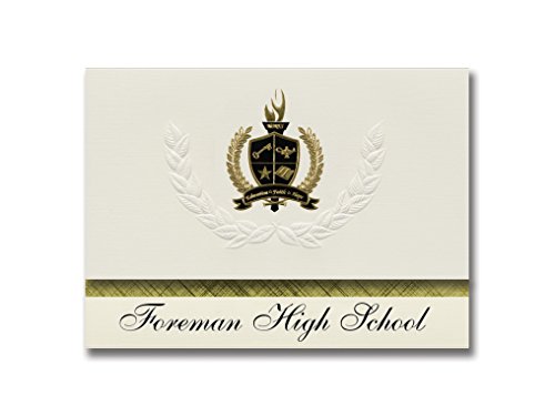 Studio : Signature Announcements, Inc Publisher : Signature Announcements, Inc Binding : Office Product Product Description Foreman High School "Print Your Own” Graduation Announcements, Presidential Style, Professional Package. Signature Announcements’ Presidential Tri-Panel Announcement actually opens both Up: Top panel with your Logo/Mascot; Down: Bottom panel with your school name. When the top panel is raised, you will see a beautifully sculpted embossing of a graduation cap and diploma. They are made of linen textured 92lb card stock and are Foil Stamped using sculpted dies by skilled artisans. They are the perfect size for a 3x5 graduation photo insert. Students across the country agree with you - Your Once-in-a-Lifetime event demands the highest quality, most professional announcement available! This is why our Platinum Announcements are Rated #1! You just spent four years achieving a great accomplishment. Show your friends and family how proud you are and how far you have come. Choose Signature Announcements quality to present your new image. Professional Package: Graduation Announcements (25) “Print your own”; Foil-lined inner Envelopes (25); Foil-lined outer envelopes(25); Premium Return Address Labels (25); Premium Envelope Seals (25); Premium Thank you cards with envelopes (25); Announcement Tissue (25); Certificates of Appreciation with Black Matte and Leatherette cover (2); a Souvenir Tassel with Year Date; Announcement Keepsake (2). 0
