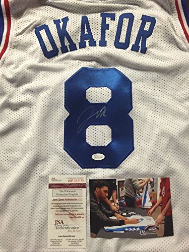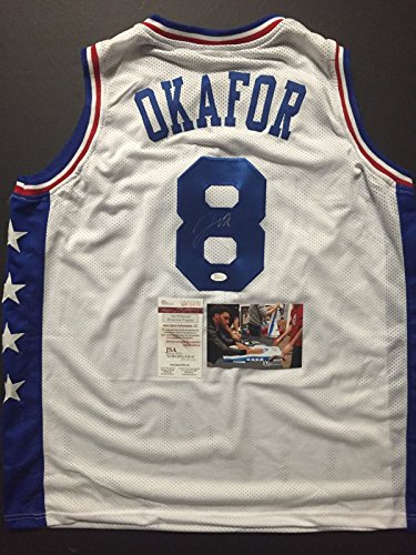 Autographed/Signed Jahlil Okafor Philadelphia 76ers Sixers White Custom Basketball Jersey JSA COA & 4x6 Photo