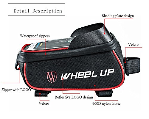 -. Feature : MATCH:Bike Bag Fit for iPhone 7/6s/6/5s/5c/5, Galaxy S7/S6/S6 Edge, Galaxy S5 and Android smartphone. This Phone Mount designed for Cellphone size below 6.0 inch. Also suitable for phones even with a slim case / MATERIAL:The bicycle bag attached with Velcro straps, made by 600D tear-resistant polyester, lightweight and durable / DESIGN:Bike pannier bag designed for safe storage, holds cell phone safe.Hard wearing, comfortable, 100% polyester material waterproof, weatherproof and durable. / SAFETY:Reflective tape details help to provide a warning effect for night riding, and this bag also helps to carry tools, sunglasses, cellphones, purses and other small essentials, a perfect choice for you. / CONVENIENT:The pannier bike bag has clear transparent PVC window for touchscreen operation and earphone wire hole for calls and listening music while cycling