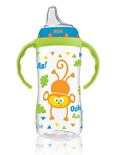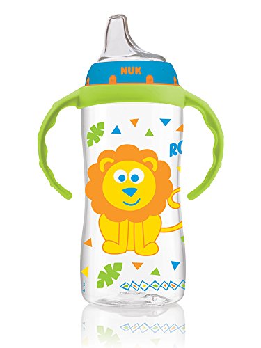 -. Binding : Baby Product -. Brand : NUK -. Department : baby-boys -. EAN : 0885574775802 -. Feature : Helps make the transition from bottle to cup easier / Spill-proof, soft spout is designed to be gentle on gums while teaching baby to drink from a spout / Air vent helps reduce swallowing air / Easy-grip, anti-slip handles are easy for baby to hold and removable as baby ages / Flows easily when sipped; Designed for ages 6-months and up -. Label : NUK -. Manufacturer : NUK -. Model : 14120 -. MPN : 14120 -. PackageQuantity : 1 -. PartNumber : 14120 -. ProductGroup : Baby Product -. ProductTypeName : BABY_PRODUCT -. Publisher : NUK -. ReleaseDate : 2015-03-19 -. Studio : NUK -. Title : NUK Jungle Designs Large Learner Cup in Boy Patterns, 10-Ounce -. UPC : 885574775802
