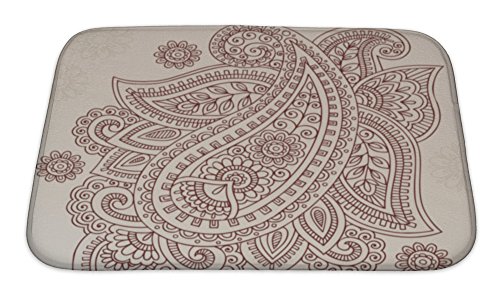 Gear New Henna Paisley Flower Doodle Design Element Bath Rug Mat No Slip Microfiber Memory Foam