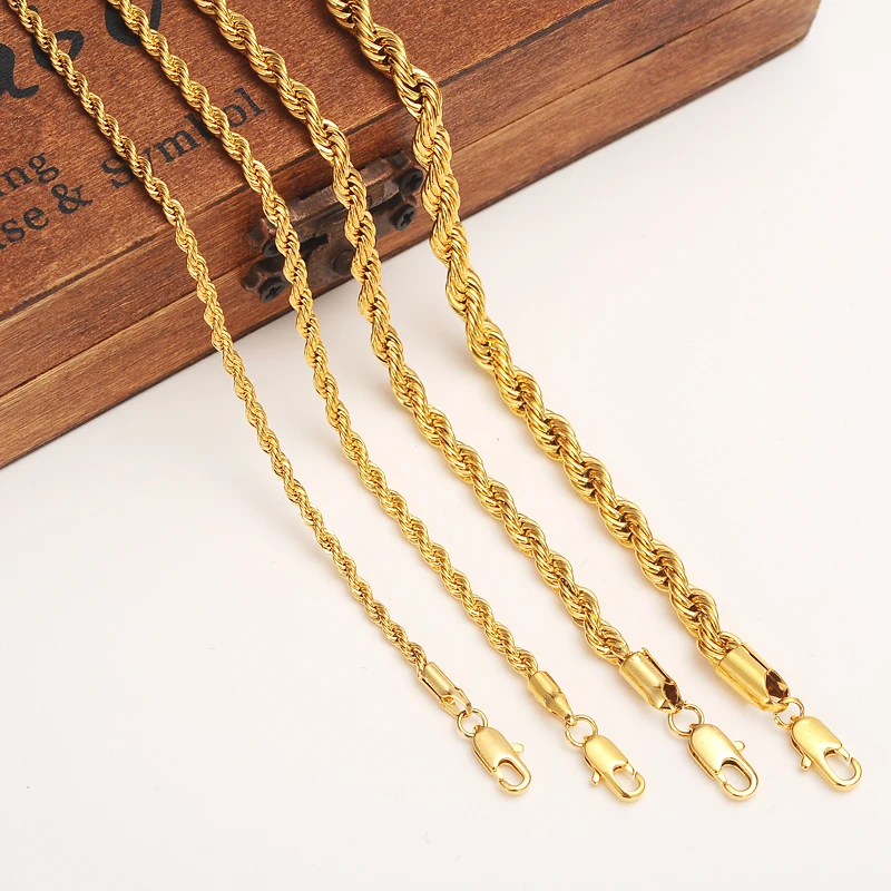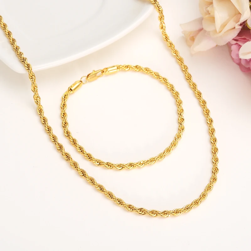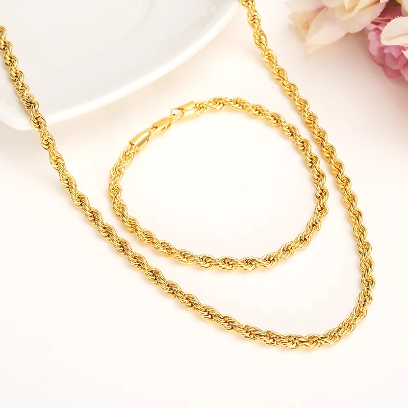 Jewelry Type: 24k Gold color Filled Necklace Chain for Men and Women Necklace Brac
