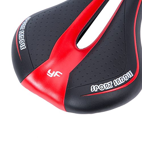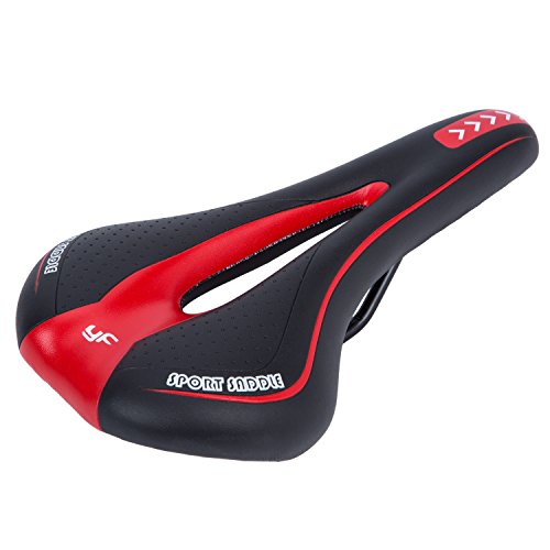 SUNVP Bike Saddle Mountain Bike Seat Professional Road MTB Gel Comfort Bicycle Seat Cycling Seat Cushion Pad 27*15cm Bike Saddle is the perfect riding companion for anyone loves cycling. It is lightweight and of fashion design. For safety concern, it is designed to resist shock and anti-skid. The humanized hollow design helps to keep butts cool and ease stress on butts. Sitting on it you will feel comfortable without being neither too soft or too firm. With such a good saddle, you can challenge any riding adventure!