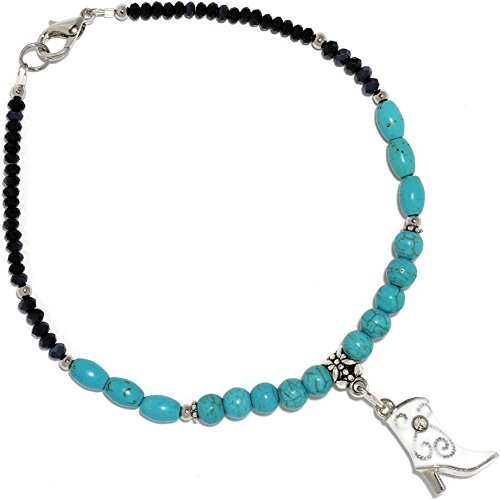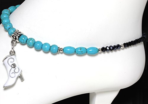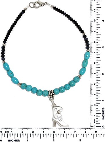 -. Binding : Jewelry -. Brand : AnsonsImages -. Department : womens -. Feature : Bracelet Or Anklet Use. / Earth Stone Beads Are Made Of Resin. / Silver Tone Alloy Material. / Lobster Claw Clasp / Please See Other Photo For Measurements -. Label : na -. Manufacturer : na -. Model : na -. MPN : na -. PartNumber : na -. ProductGroup : Jewelry -. ProductTypeName : FASHIONNECKLACEBRACELETANKLET -. Publisher : na -. Studio : na -. Title : 9.5" Inches Anklet Bracelet Earth Stone Beads Cowboy Boot Turquoise Black AnsonsImages