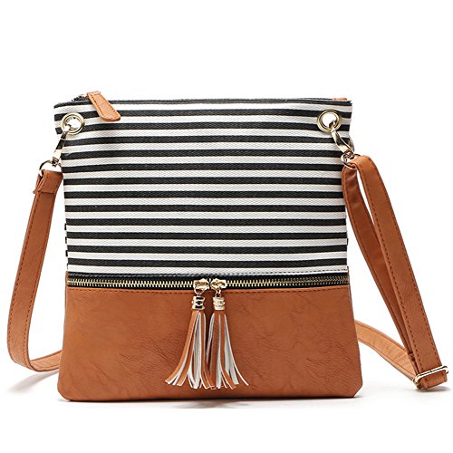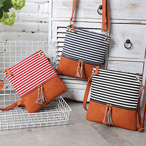 - Unique and stylish design: This crossbody shoulder bag is stripe color design, with tassel decoration, high quality buckle and hardware, elegant and fashionable. Matching any casual, retro, refreshing clothing perfectly.