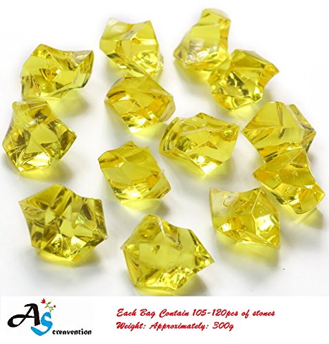A&S Creavention Translucent Acrylic Ice Rocks Crystals Gems for Vase Fillers, Table Scatters, etc. 300g/Bag 150-160 stones (Yellow)