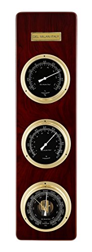 Del Milan 3 in 1 Weather Station, Barometer, Thermometer, Hygrometer, Mahogany Finish