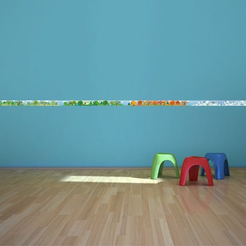 -. Feature : Very easy and quick to put up. Peel it off, stick it on, done! / Perfectly suitable for children's bedrooms. Can be removed at any time. / Made in Germany! Top quality. Made from self-adhesive vinyl film. / 100% suitable for wood chip wallpaper with an excellent grip on smooth surfaces. Not suitable for latex or silicone. / Dimensions: The border consists of 4 parts, each with a length of 59 inch and a height of 4.9 inch. Total length: 236 inch.