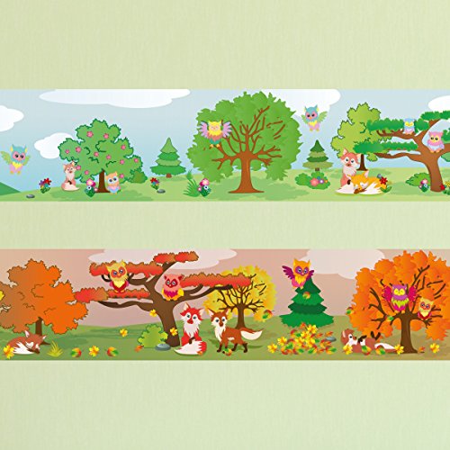 -. Title : Wandkings border "Owls and Foxes" Length: 236 inch, self-adhesive, for children's rooms