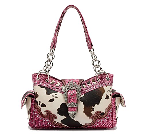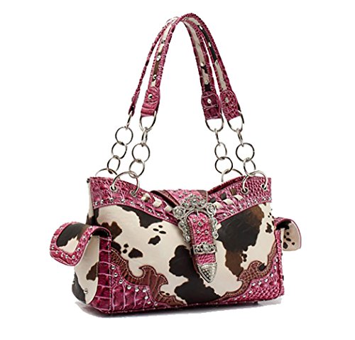 Cowgirl Trendy Western Buckle Scroll Art Animal Cow Print Conceal Carry Purse