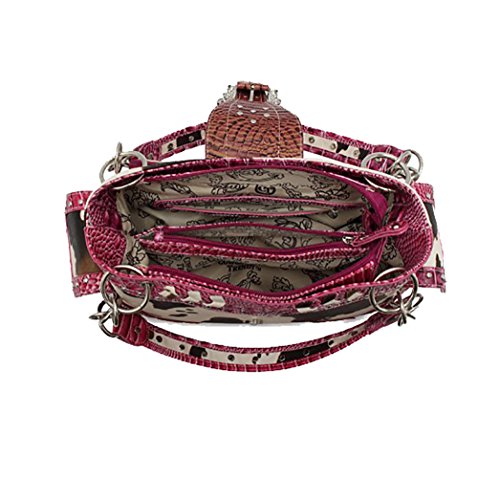 Make a statement with this large size womens country western style purse. This beautiful handbag with cow print and crystal accents adds a touch of style and sparkle to any wardrobe.