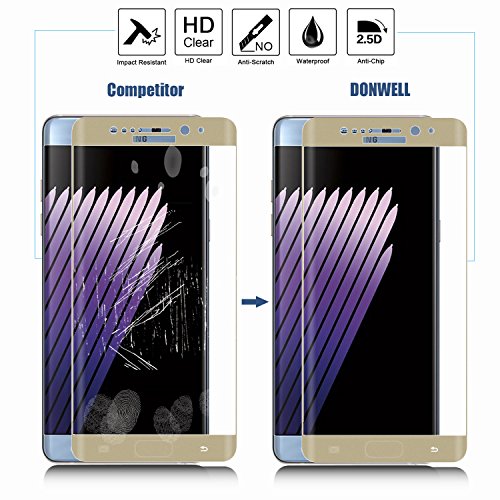[2 PACK GOLD] Samsung Galaxy Note 7 Screen Protector, DONWELL Full Screen Coverage Screen Protector for Galaxy Note 7 [3D Curved] [Edge to Edge] [HD Clear] [Bubble Free]