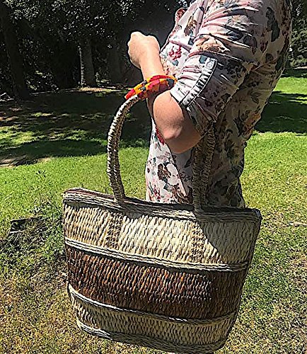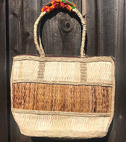 Woven sisal bag tote with fabric, African ethnic everyday purse, Boho market straw beach bag