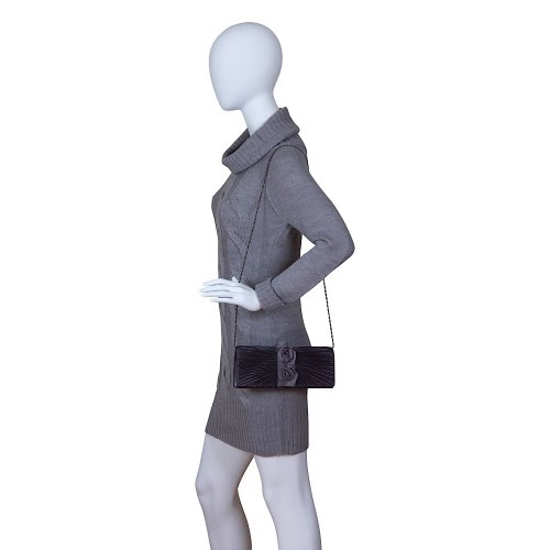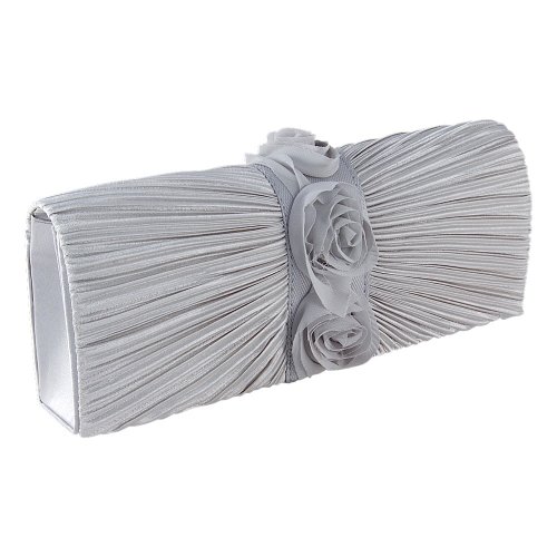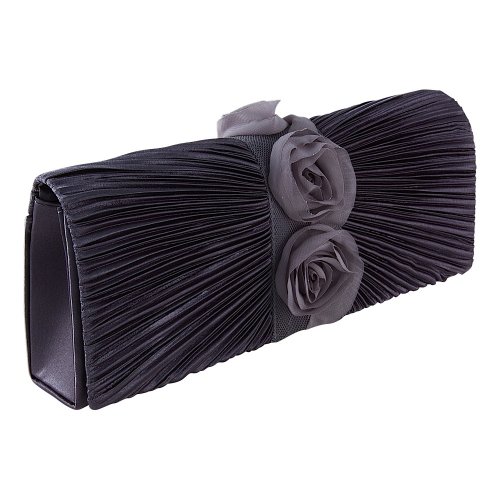 The Connie evening bag is a Carlo Fellini designer masterpiece. It combines smooth pleated silk on a hard case evening bag with enchanting flowers blooming in the center. This inspirational clutch has a detachable chain to make it easier to wear in comfort over the shoulder, if desired. It has a simple to use (magnetic) snap closure. The interior is smooth silk, and take a look; we also added a wonderful side pocket for the essentials to be stashed away safely, like your cash and credit cards. It isn't every day you see a designer bag that captivates the heart. A bag like this is a breath of fresh air on a spring day. Capture some of that every day, with the Connie clutch.Feature