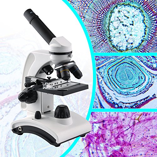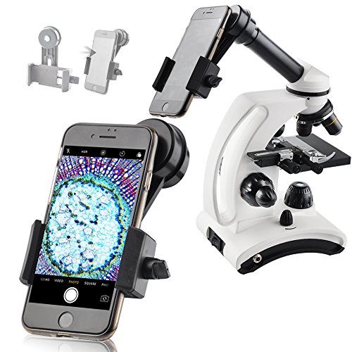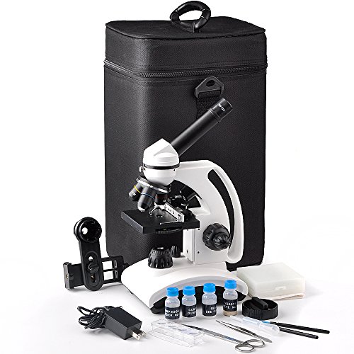 landove Compound Student Monocular Microscope with Smartphone Adapter ,40X-1000X Dual Light Optical Glass Lens All-Metal Microscope + Microscope Prepared and Blank Slides and Storage Bag