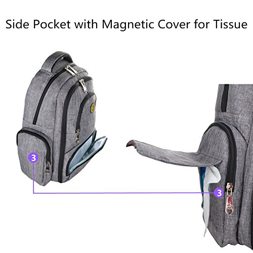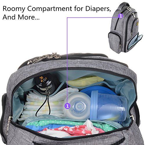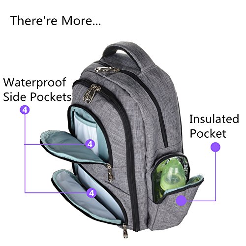 imoli Diaper Backpack for Mother and Farther: Large capacity - this diaper backpack includes a roomy compartment for storing plenty of diapers; up to 9 separated pockets for storing various things and 4 insulated pockets for baby bottles.
