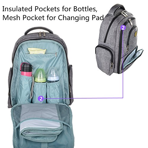 Large capacity - this diaper backpack includes a roomy compartment for storing plenty of diapers; up to 9 separated pockets for storing various things and 4 insulated pockets for baby bottles.
